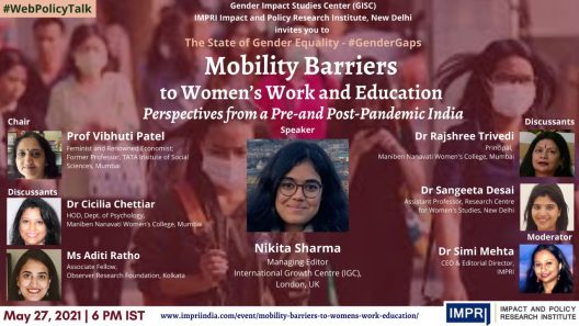 #GenderGaps: Nikita Sharma (Managing Editor, International Growth Centre (IGC), UK) on Mobility Barriers to Women’s Work and Education Perspectives from a Pre-and Post-Pandemic India