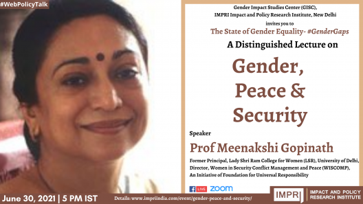 Prof Meenakshi Gopinath (Former Principal, Lady Shri Ram College for Women (LSR), University of Delhi, Director, Women in Security Conflict Management and Peace (WISCOMP): An Initiative of Foundation for Universal Responsibility) on Gender, Peace & Security