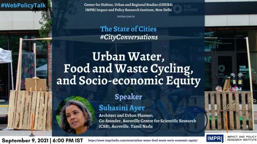 Suhasini Ayer (Architect and Urban Planner; Co-founder, Auroville Centre for Scientific Research (CSR), Auroville, Tamil Nadu) on Urban Water, Food and Waste Cycling, and Socio-economic Equity