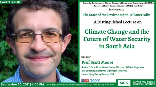 Prof Scott Moore (Senior Fellow, Penn Water Center, and Director of China Programs and Strategic Initiatives, Office of the Provost, University of Pennsylvania, USA) on Climate Change and the Future of Water Security in South Asia