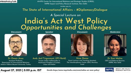 Ambassador Anil Trigunayat, (IFS Retd) (Former Ambassador to Hashemite Kingdom of Jordan, Libya and Malta) on India's Act West Policy: Opportunities and Challenges