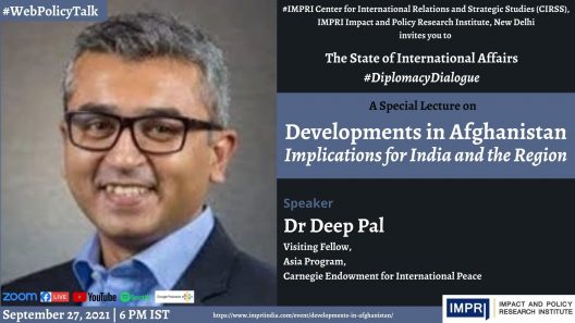 Dr Deep Pal (Visiting Fellow, Asia Program, Carnegie Endowment for International Peace) on Developments in Afghanistan: Implications for India and the Region