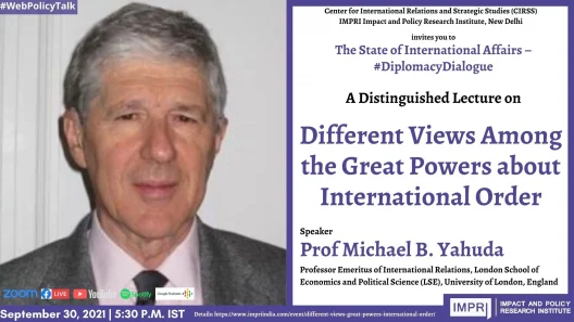 Prof Michael B. Yahuda (Professor Emeritus of International Relations, London School of Economics and Political Science (LSE), University of London, England) on Different Views Among the Great Powers about International Order