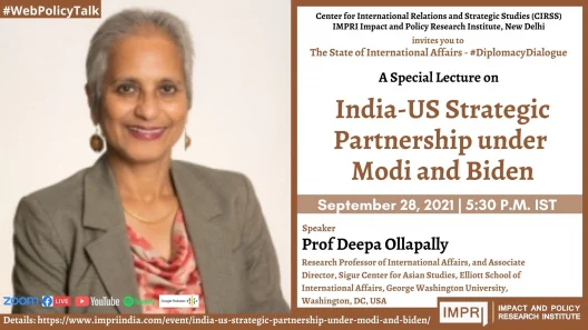 Prof Deepa Ollapally (Research Professor of International Affairs, and Associate Director, Sigur Center for Asian Studies, Elliott School of International Affairs, George Washington University, Washington, DC, USA) on India-US Strategic Partnership under Modi and Biden