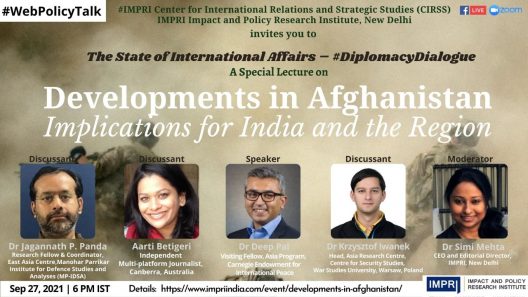 Dr Deep Pal (Visiting Fellow, Asia Program, Carnegie Endowment for International Peace) on Developments in Afghanistan: Implications for India and the Region