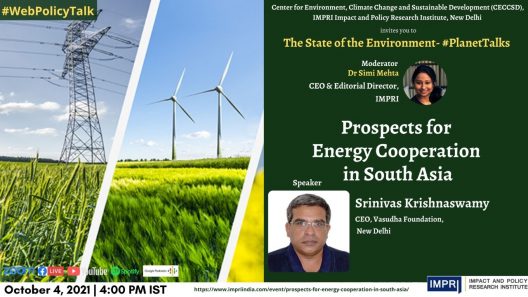Srinivas Krishnaswamy (CEO, Vasudha Foundation, New Delhi) on Prospects for Energy Cooperation in South Asia