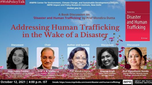 Book Discussion on 'Disaster and Human Trafficking' with author Prof Mondira Dutta (Founder Chairperson and Professor (Retd.), Centre for Inner Asian Studies, School of International Studies, Jawaharlal Nehru University (JNU), New Delhi)