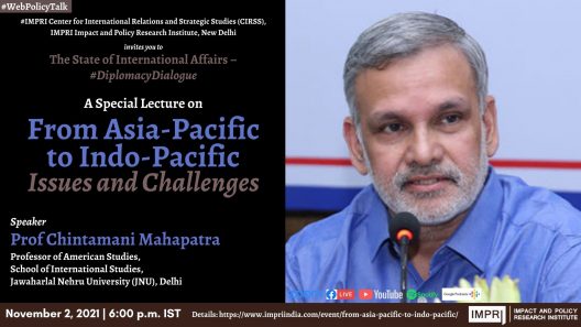 Prof Chintamani Mahapatra (Rector (Pro-Vice Chancellor), and Professor of American Studies, School of International Studies, Jawaharlal Nehru University (JNU), Delhi) on From Asia-Pacific to Indo-Pacific: Issues and Challenges