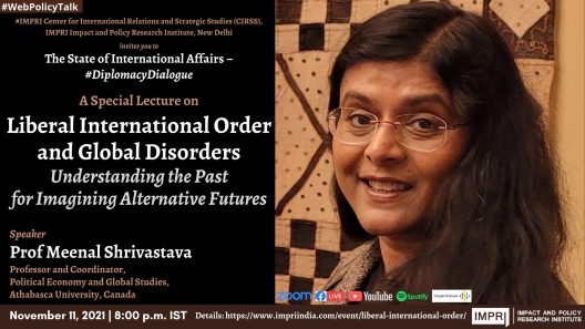 Prof Meenal Shrivastava (Professor and Coordinator, Political Economy and Global Studies, Athabasca University, Canada) on Liberal International Order and Global Disorders: Understanding the Past for Imagining Alternative Futures