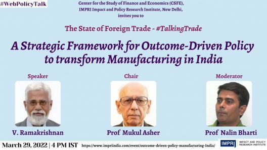 V. Ramakrishnan (Managing Director, Organisation Development, Singapore) on A Strategic Framework for Outcome-Driven Policy to Transform Manufacturing in India