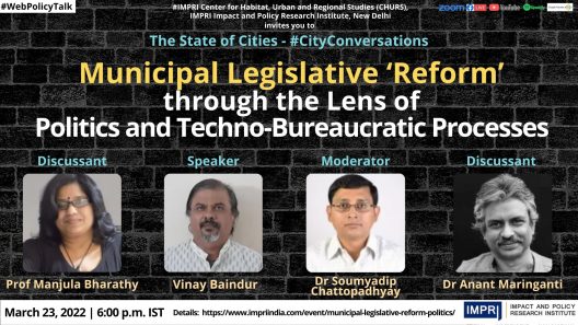 Vinay Baindur (Researcher and Activist, Urban Reforms, Governance, Water Reforms, and Policy) on Municipal Legislative 'Reform' through the Lens of Politics and Techno-Bureaucratic Processes