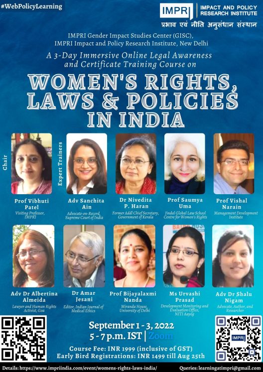 #IMPRI Gender Impact Studies Center (GISC) invites you to a 3-Day Immersive Online Legal Awareness and Certificate Training Programme on
