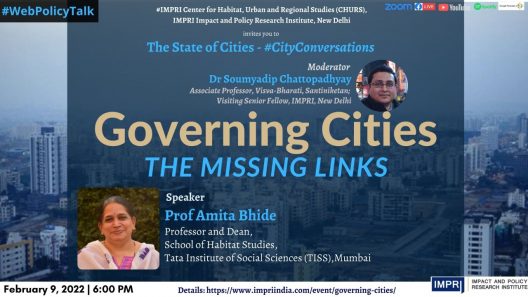 Prof Amita Bhide (Professor and Dean, School of Habitat Studies, Tata Institute of Social Sciences (TISS), Mumbai) on Governing Cities: The Missing Links